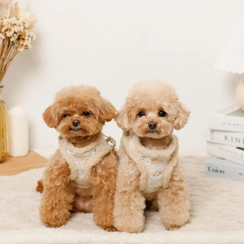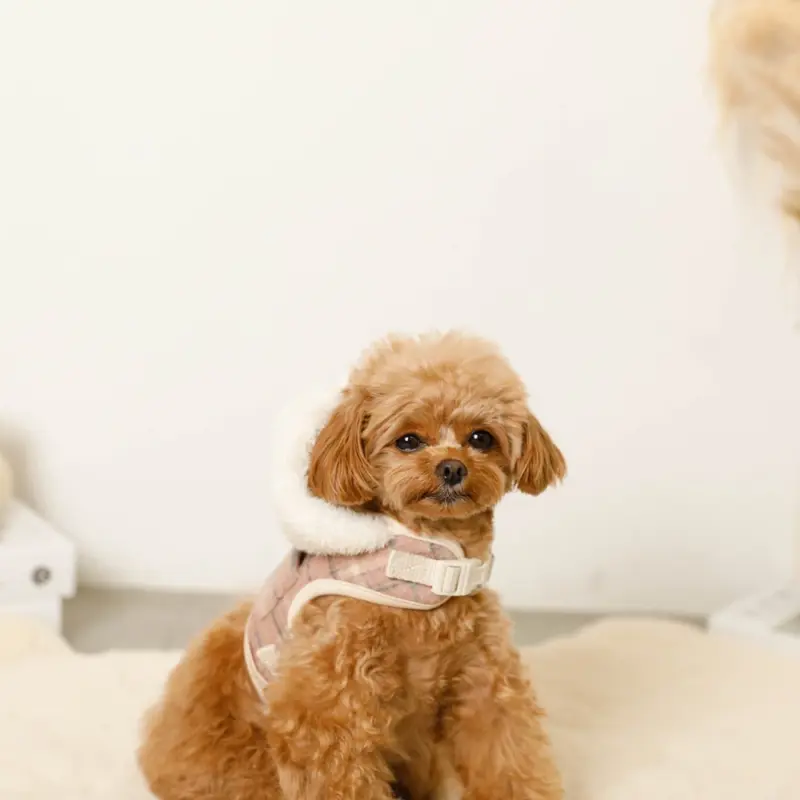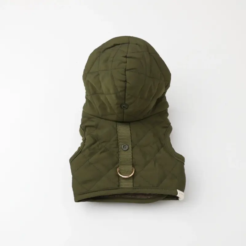 フード付きキルティングダウンライクハーネス+リードSET【名入れ刺繍対応】