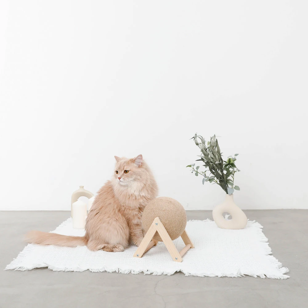 持続可能な天然素材を厳選して使用しています。爪とぎ部分には高密度天然麻ロープを採用し、猫の爪の健康を考慮した適度な硬さを実現しています。