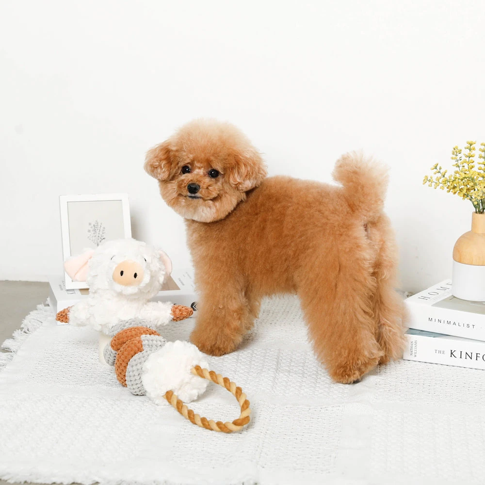 市場には数多くのペット玩具が存在しますが、くるくる綱引きブタさんは以下の点で他製品と差別化されています: