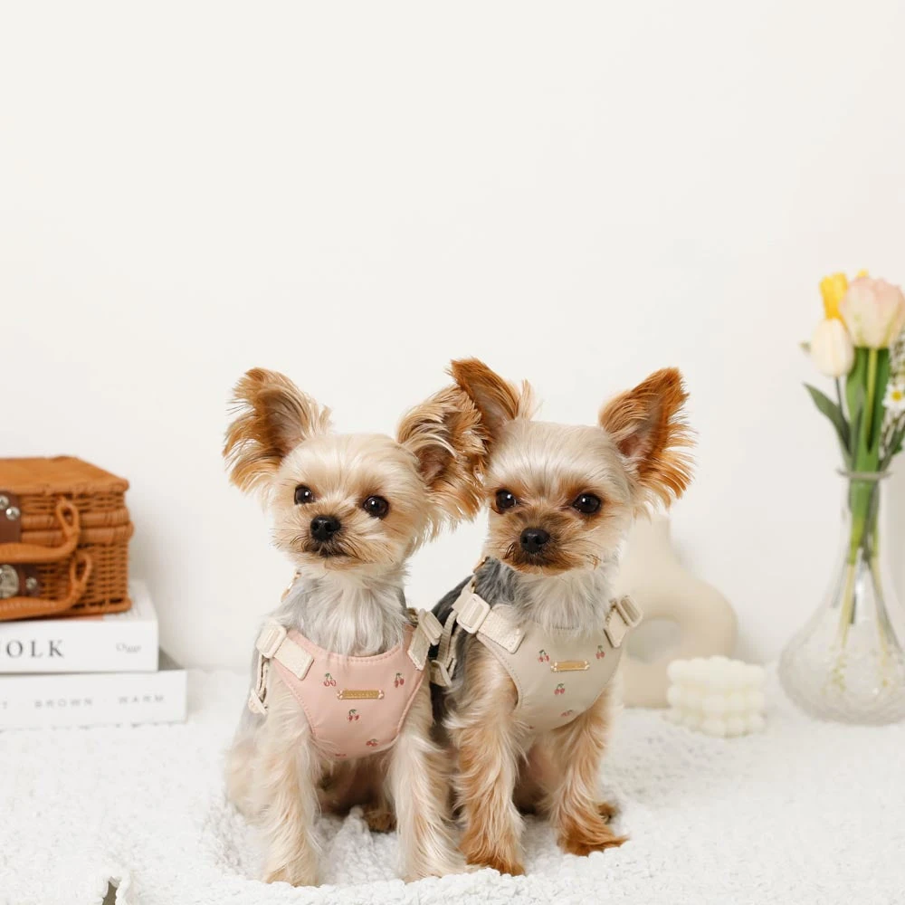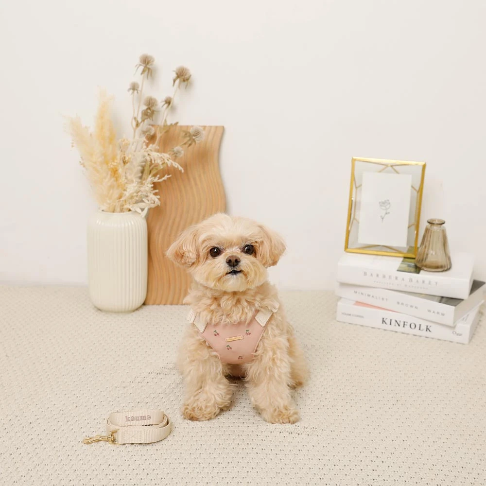 さくらんぼ刺繍ハーネス+リードSET【名入れ刺繍対応】〜愛犬のための特別な散歩スタイル〜