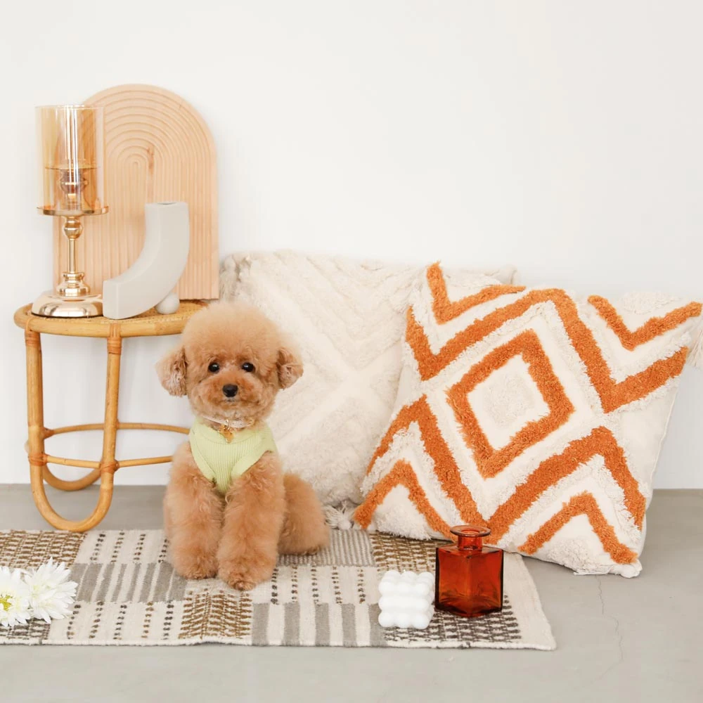 トライアングル柄フリンジクッション:愛するペットのための至極の休息空間