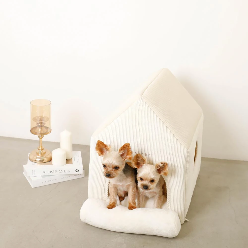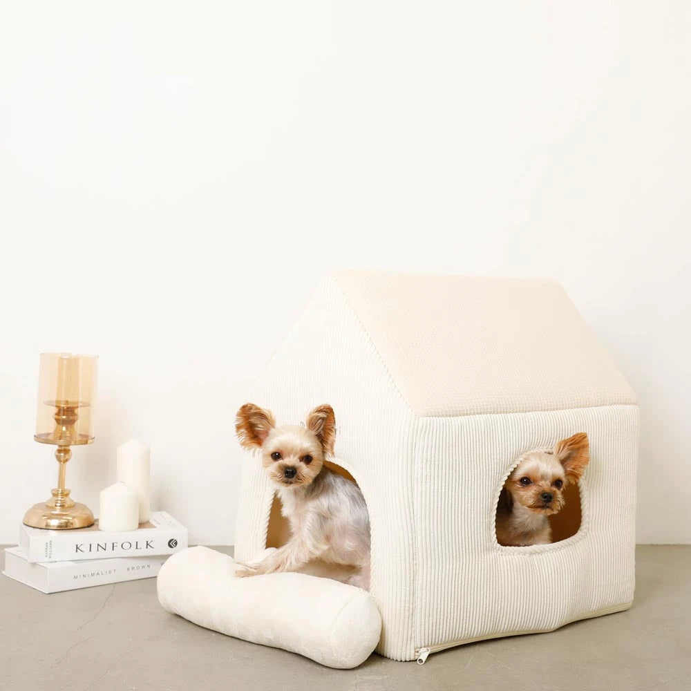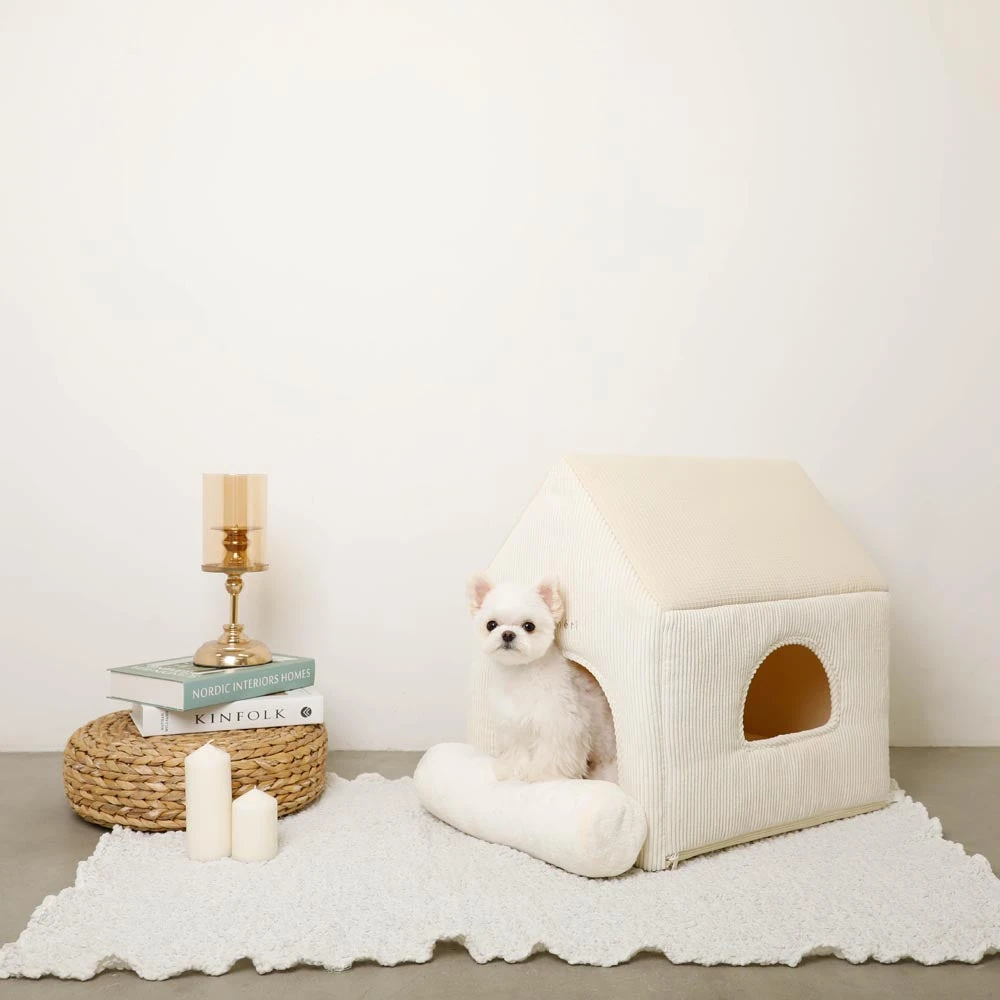 ナチュラル小窓付きコーデュロイペットハウス:愛するペットのための至福の休息空間