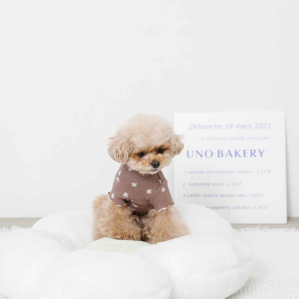 繊細なフラワーパターンが施された上質ファブリックは、どのようなインテリアにも美しく調和します。従来のペットベッドの概念を超えた、まるで家具のような佇まいが特徴です。