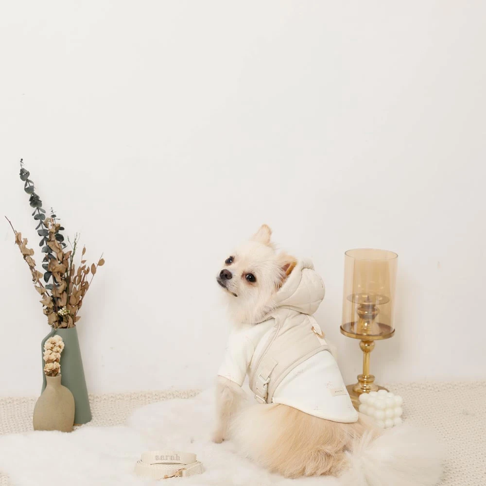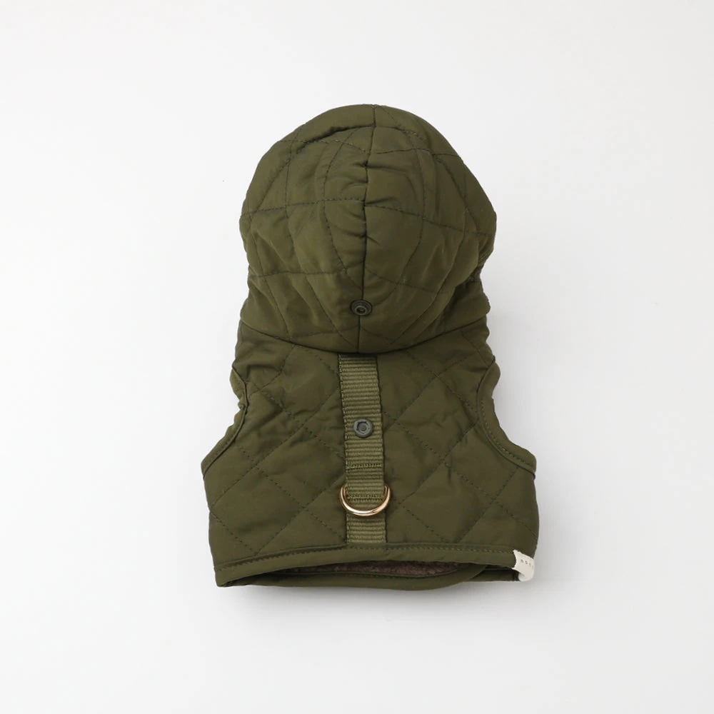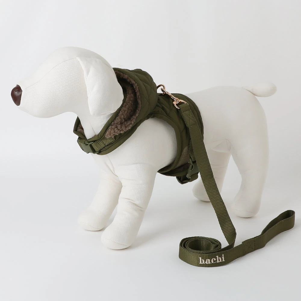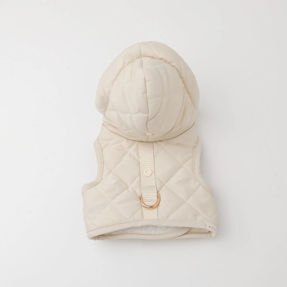 フード付きキルティングダウンライクハーネス+リードSET【名入れ刺繍対応】