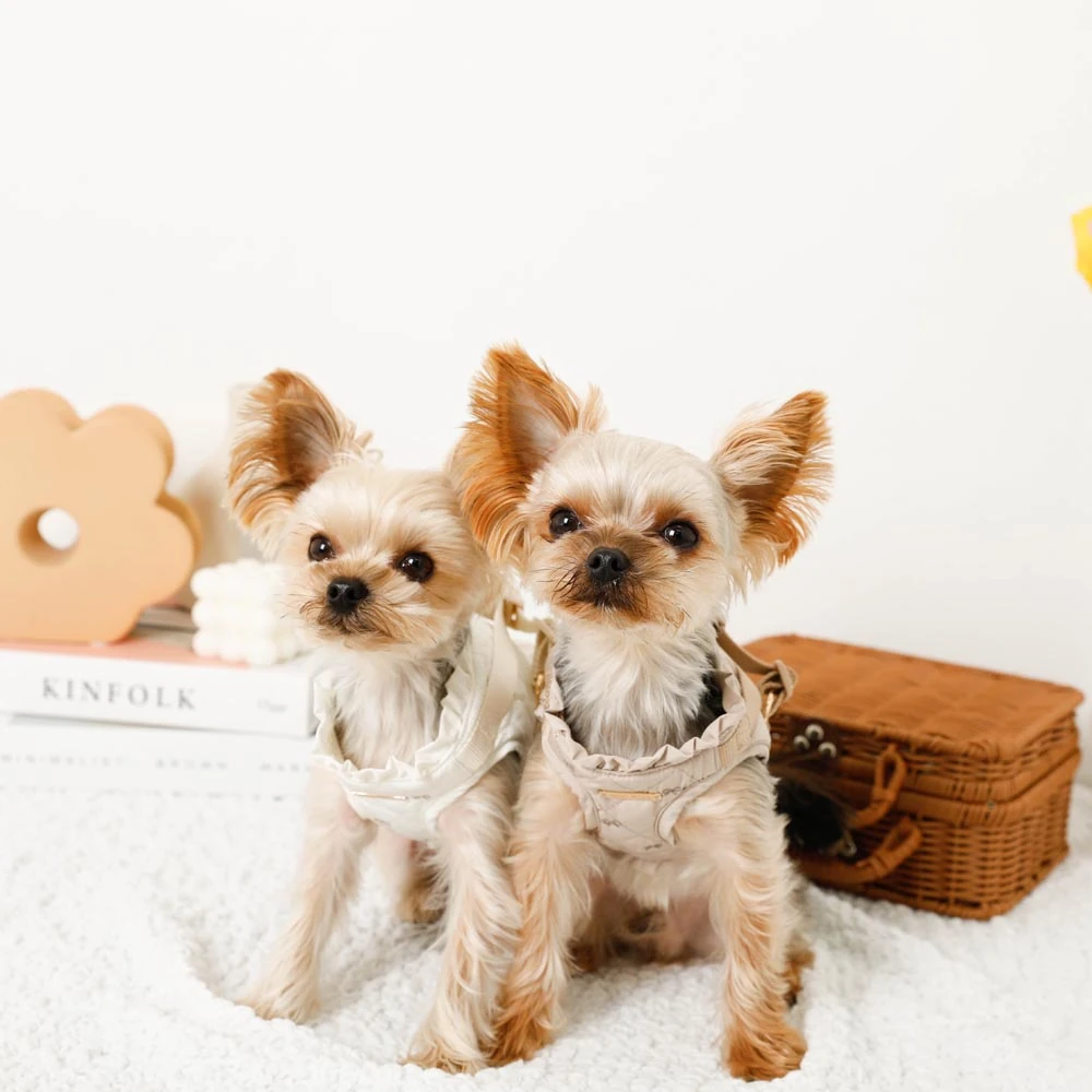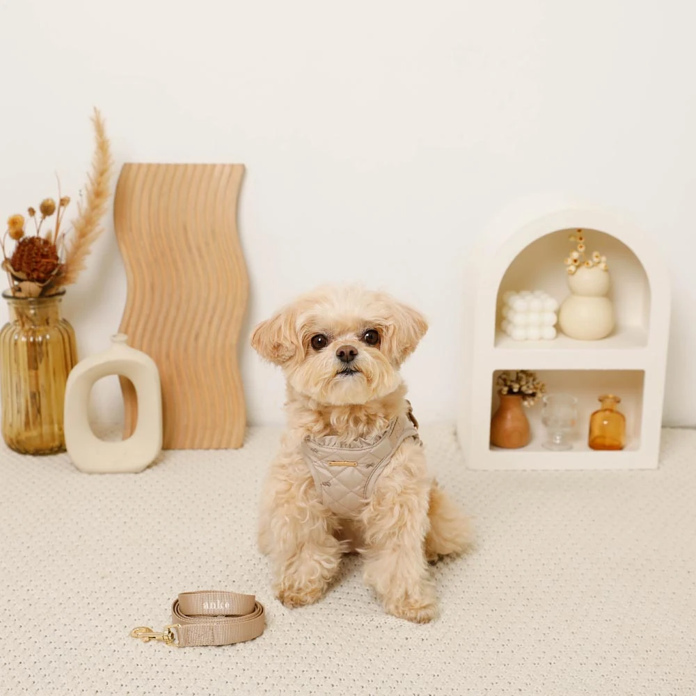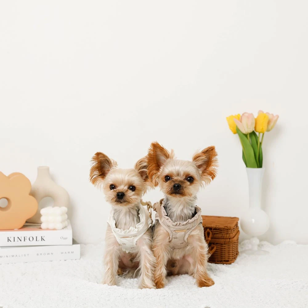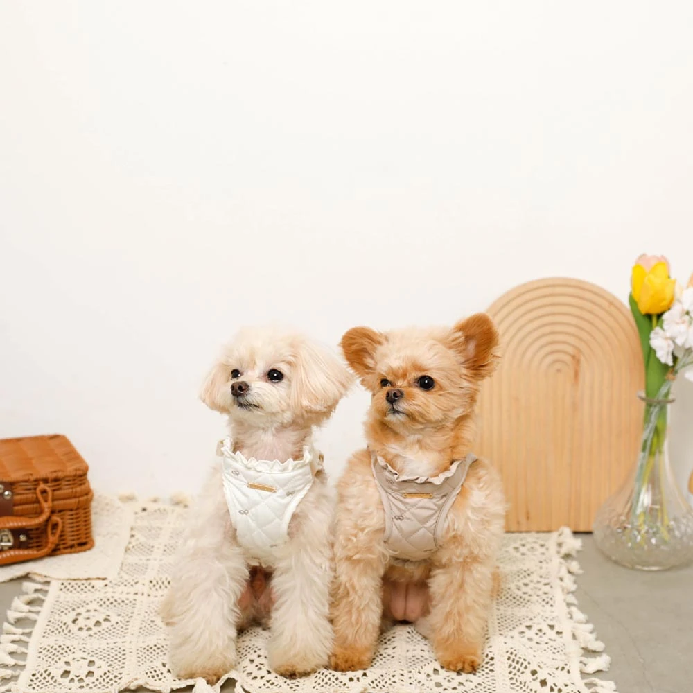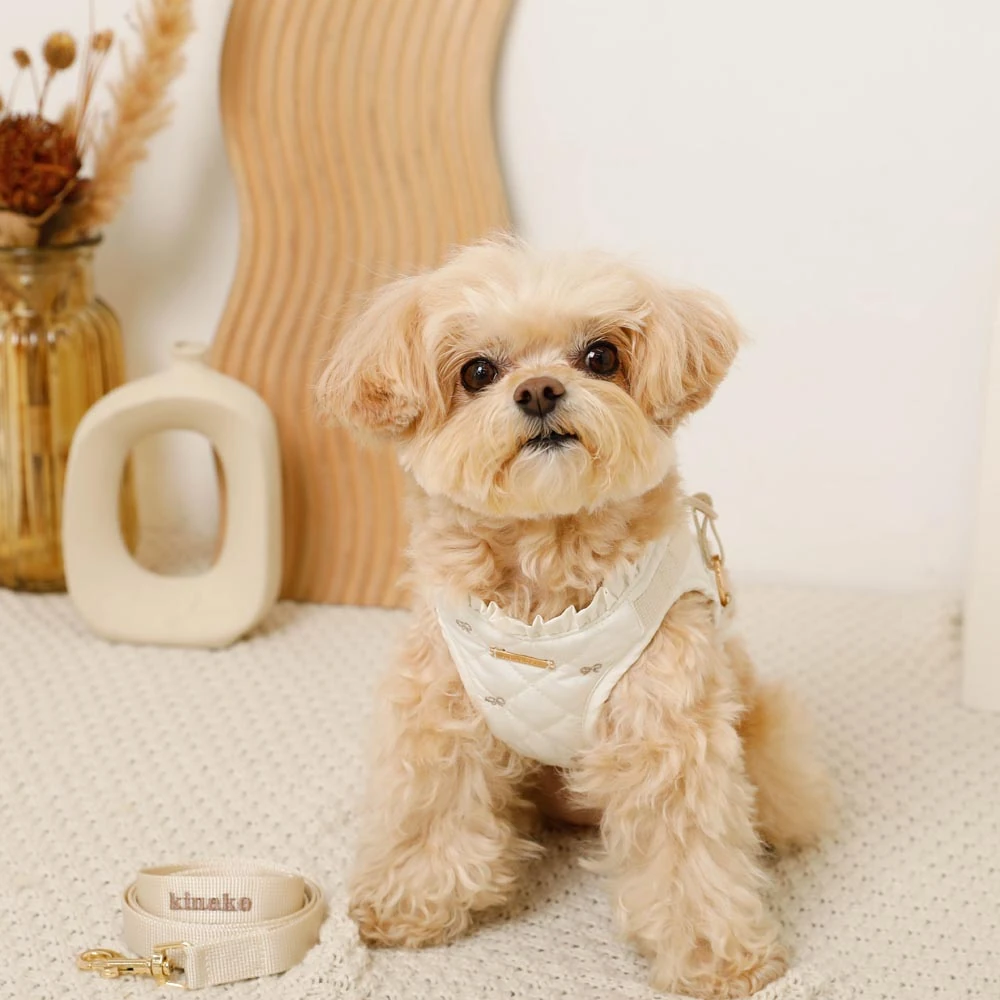 愛犬との毎日をもっと特別に、もっと楽しく。リボン刺繍フリルキルティングハーネス+リードSETは、そんな願いを込めて開発されました。機能性と美しさを兼ね備えた本商品で、愛犬との素敵な時間をさらに輝かせてください。ご購入を心よりお待ちしております。