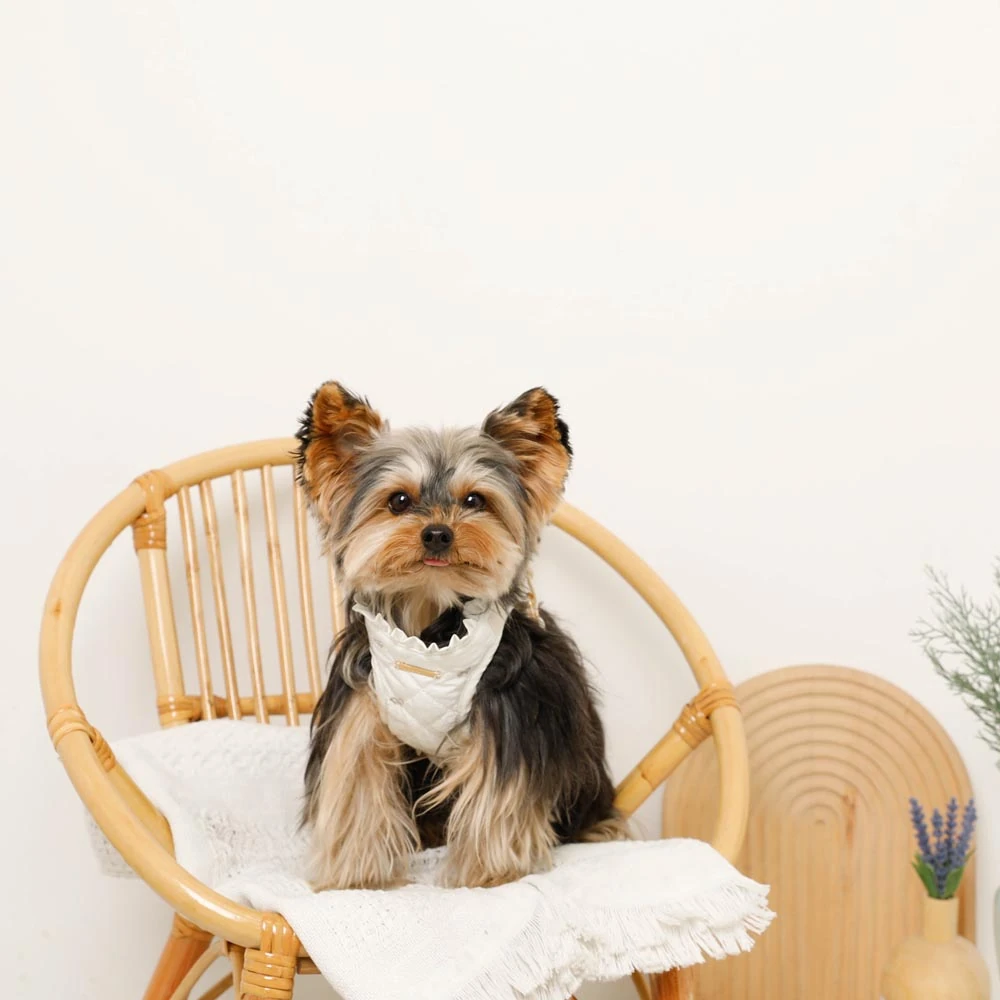 リボン刺繍とフリルの組み合わせは、クラシックでありながらモダンな印象を与えます。刺繍には色褪せにくい高品質の糸を使用し、洗濯後も美しさを保ちます。フリル部分は取り外し可能で、お好みに合わせてスタイルを変更できるのも特徴です。カラーバリエーションも豊富にご用意しており、愛犬の毛色やお好みに合わせてお選びいただけます。