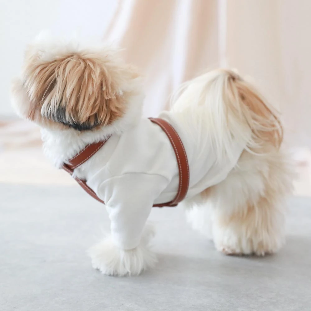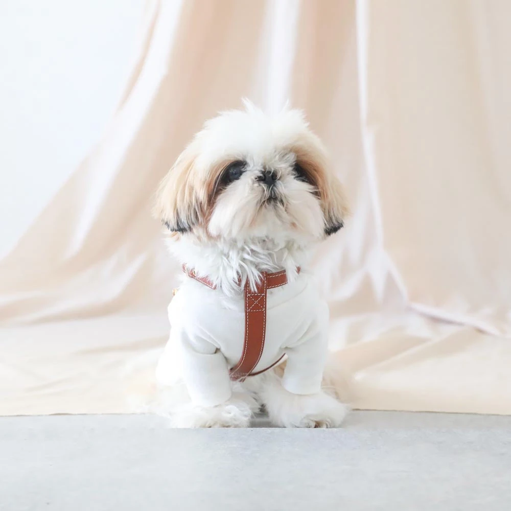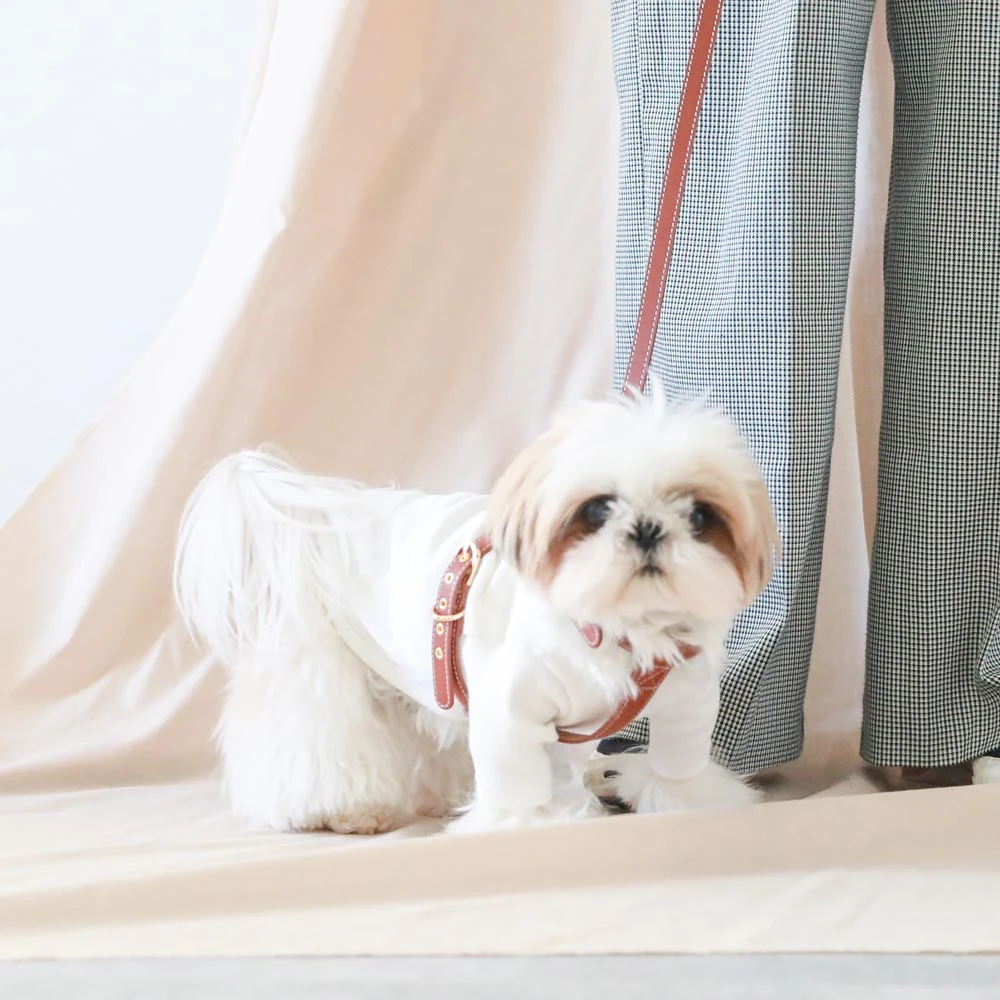 愛犬との毎日をより特別なものにしたいとお考えの飼い主様へ。当社のレザーハーネスSMALLは、機能性とスタイルを追求したこだわりの一品です。高級レザーの風合いを活かしたデザインは、愛犬の魅力を引き立てながら、快適な装着感を実現します。